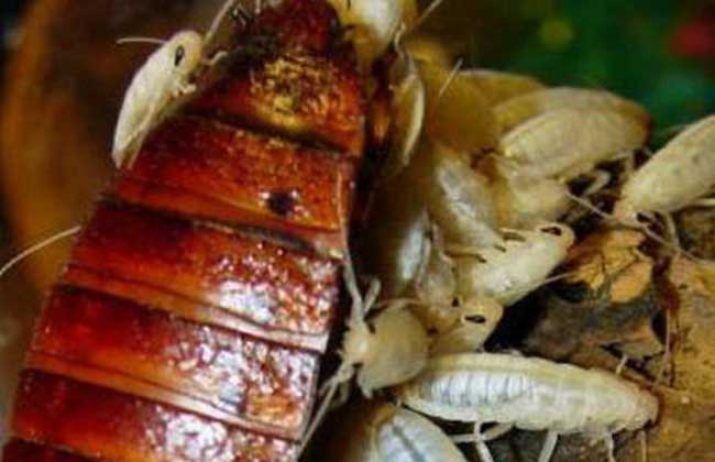 3、雌虫先产出壁薄而柔软的卵鞘,产卵在其中。产卵完成后,卵鞘又收缩进体内的“育室”中,一直保持到若虫孵出。这是蟑螂卵胎生的一种形式。蔗蠊的产卵方式属于这一类型。变态时期